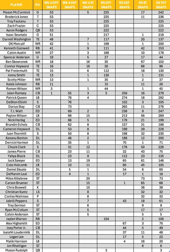 Week Four Snap Leaders/Season Total Snaps Leader: